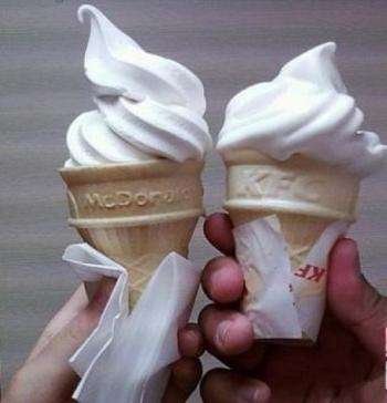 甜筒制作方面,网友普遍反映,麦当劳的甜筒是实心的,大多都会把下面的脆皮筒都用雪糕填满,而肯德基的则大多是空心筒,筒内大多都没有雪糕。并且麦当劳会为消费者提供一张纸巾来拿甜筒,而肯德基提供的是一张薄纸。