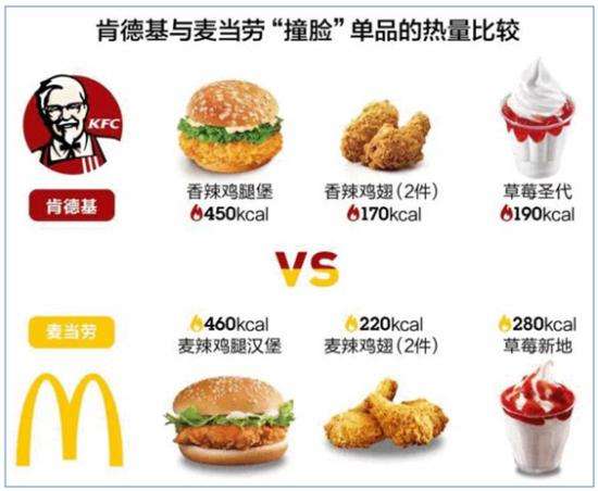 由上图可以看出,在“撞脸”单品的热量控制方面,肯德基做的比麦当劳要好。