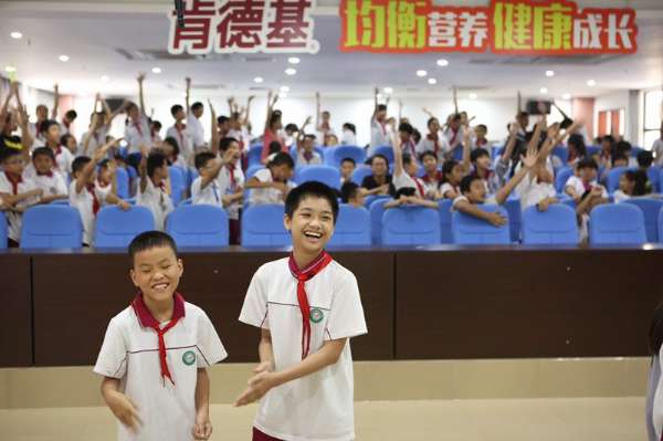在海口玉沙实验小学的多功能厅里,来自五年级的200位小学生参加了“膳食营养科普”大讲堂,宣讲团通过理论讲课结合游戏互动的方式,让小朋友轻松掌握膳食营养的知识。生动的动画演示从人体所需的六大营养素的来源到不同的作用像动画片一样传递给现场的同学。