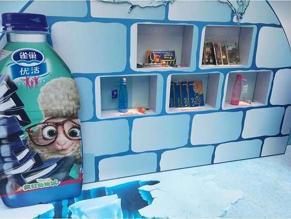 雀巢优活儿童水,选用了8个动画形象,包括:棉尾兔朱迪、赤狐尼克、树懒闪电、狮市长、绵羊副市长、猎豹本杰明警官、耳廓狐芬尼克以及大明星瞪羚夏奇羊