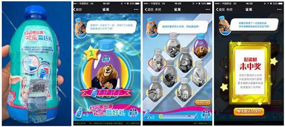 为了小朋友觉得喝水有趣,雀巢优活儿童水还做了个H5养成游戏。撕开瓶身一侧,扫描露出的二维码就能玩到。每卖一瓶儿童水就能搜集一颗水能量。四颗水能量激活一瓶虚拟的儿童水,并触发抽奖。奖品都是《疯狂动物城》的周边,比如笔记本、水瓶等等。