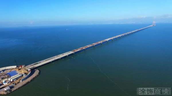 港珠澳大桥上使用的是嘉宝莉的硅烷浸渍漆。这种漆是高纯度未经稀释的异丁基三乙氧基硅烷,小分子结构即可穿透胶结性表面,渗透到混凝土内部与暴露在酸性或碱性环境中的空气及基底中的水分子发生化学反应,形成一斥水处理层,从而抑制水分进入到基底中,产生防水、防C1—、抗紫外线的性能且具有透气性,有效防止基材因渗水、日照、酸雨和海水的侵蚀而对混凝土及内部钢筋结构的腐蚀、疏松、剥落、霉变而引起的病变,提高港珠澳大桥的使用寿命。经保护的基材具有良好的斥水性,很好地保留和维持大桥原有的美丽外观。据了解,在碱性环境如浇注不久的混凝土中,会刺激该产品反应并加速斥水层的形成,经检定嘉宝莉的硅烷浸渍漆符合JTJ275-2000《海港工程混凝土结构防腐蚀技术规范》标准,其技术和功能得到官方肯定,值得放心使用。