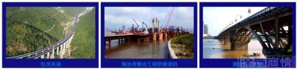 嘉宝莉的硅烷浸渍漆广泛应用于各类钢筋混凝土结构中高速公路、桥梁结构、港口码头、海洋工程等,特别适用于在恶劣环境中使用高标号混凝土结构,受盐雾、化冰盐侵蚀的公路、立交桥、电线杆、污水处理厂的污水处理池、垃圾填埋场、温差极大的高原地区等,是一种得到国家混凝土行业防腐规范推荐的产品。现在,它除了应用于港珠澳大桥工程,在包茂高速、海沧湾整治工程防腐项目、清远北江大桥等项目上也被广泛应用。