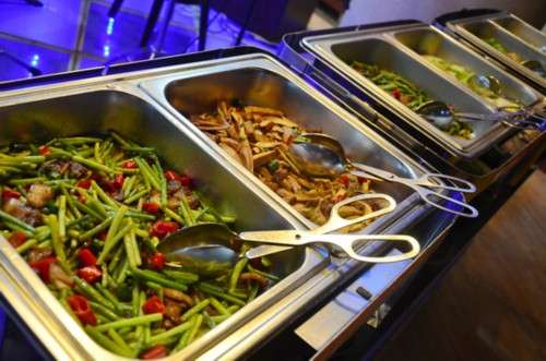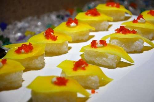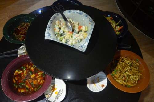 凉菜有蔬菜水果沙拉、拍黄瓜、鸡心等,还有精致好吃的寿司,做的还不错。