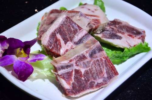 肉肉是用盘子装的,一片一片摊开摆放,看起来精致整洁,肉的品质不错,每片肉都晶莹剔透,这样烤的时候也比较方便,可以一片一片摊开慢慢的烤,享受那种看着肉片慢慢变色、烤熟,溢出香气的过程。