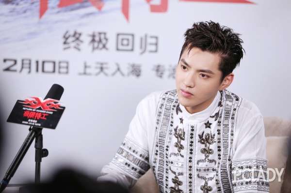 吴亦凡身穿宝姿Ports 1961 2017春夏系列衬衫出席电影《极限特工3》宣传