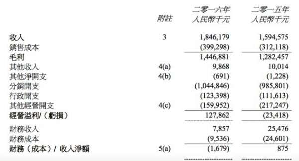 毛利为14.47亿元,同比上升12.8%;毛利率为78.4%,较2015年下滑0.2个百分点;权益股东应占溢利为0.40亿元,而2015年是亏损0.73亿元,升幅为人民币1.51亿元,主要系零售分部收入增长所致。