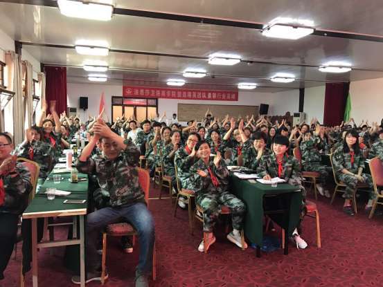 ??除了丰富的产品知识、销售知识的补充以外,会议还采用全封闭军事化管理并着力打造队员们的团队精神。连续几日,全体队员清晨6点就参加晨练。整齐洪亮的呐喊久久的回荡在基地的上空、激昂的士气深深的感染着全体队员。面对着压力、困难他们坚信“山高自有客行路,水深自有渡船人”。不管竞争多么激烈,不管条件多么艰苦,不管前进的道路多么曲折,全体队员一定会手牵手走出困境,迎接曙光。