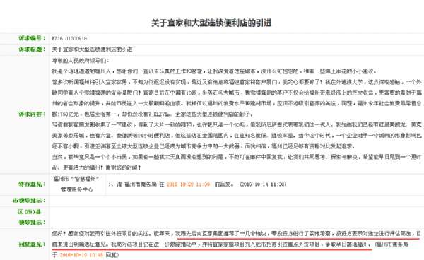 在12345网站上,福州市商务局对宜家相关问题的答复是,“近年来,我市先后向宜家集团推荐了十几个地块,带投资方进行了实地考察,投资方表示对选址进行评估筛选,目前未提出明确选址意见。我局对该项目仍在进一步跟踪推动中,并将宜家家居项目列入我市招商引资重点外资项目,争取早日落地福州”。