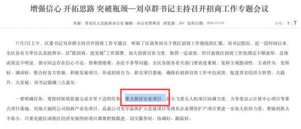 在晋安区新闻里面,我们也发现了下面一段内容——“要按时按质按量完成市里下达的任务,重点抓好宜家项目,加大飞虎无人机项目协调力度,力争斐讯云计算中心项目等重点项目落地。”