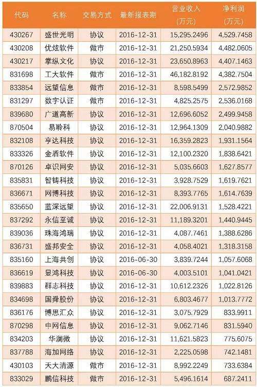 安全的墙已经不低。但信息技术多发达,病毒就有多顽强,少一个补丁,足以让城门洞开。城门失火殃及池鱼,当全世界同坐一条船,谁能幸免?无他,唯有筑高安全之墙,才能避免在网络深海中搁浅。 同样,在新三板也有那么一批信息安全概念股: