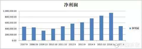2007年至2017年4月份迪士尼集团净利润增长情况表。
