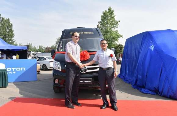 【福田商用汽车集团商务汽车业务总监、轻型商用车事业本部执行副本部长潘林波先生向四川富临运业集团股份有限公司车辆技术管理部总监罗明飞先生递交福田图雅诺车钥匙】 \u00A0