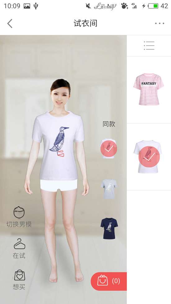 此外,用户可在同一试衣间对男模、女模进行切换,并可直接进行购买,不需返回商品详情页。