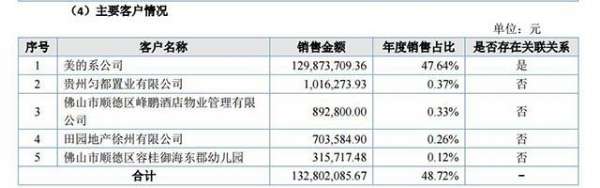 资料显示,近年来,美的物业收入很大一般分都来自于关联方“美的系”,美的物业主要向其提供地产前期配合服务和物业管理服务。财报数据显示,2014年、2015年,美的物业对“美的系”公司的销售额占分别当期业务收入的46.26%、45.86%。