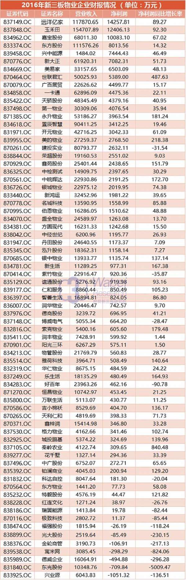2016年新三板物业企业财报情况(挖贝网wabei.cn配图)