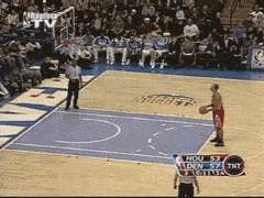 阿里纳斯的罚球很繁琐:先在手上转两下,再拿球在腰上绕三圈(必须是顺时针),再运三下球,再转一下,才罚球