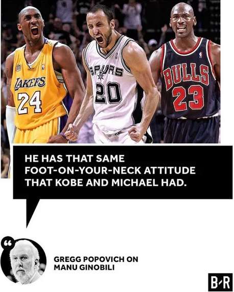 波波维奇为自己的弟子吉诺比利骄傲,马刺虽败犹荣,因为曼努打出了像科比和乔丹那样的极致比赛,对于篮球来说,这就已经足够了。联盟中有些人靠身体吃饭,比方说大鲨鱼奥尼尔太和小皇帝勒布朗詹姆斯,他们天生就是为篮球而生的,老天爷赏饭吃,不需要作出更多努力就能获得成功,另外一拨是像科比和乔丹那样,比方说现在的库里,更多的是靠后天的努力训练,将自己的进攻武器打磨成艺术般,他们拼的最多的是精神意志力,不管白猫还是黑猫,最终能抓到老鼠的就是黑猫,成者为王败者为寇,最终成功还是得凭借谁能笑到最后赢得最终总冠军。