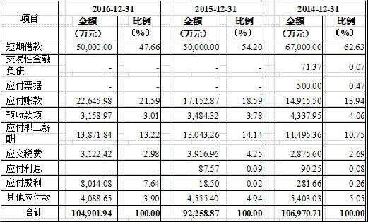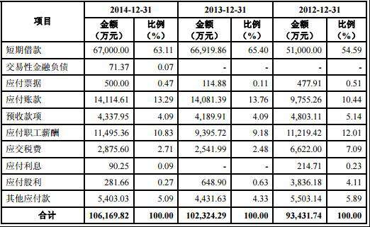 惠达卫浴流动负债(2015版本招股书)