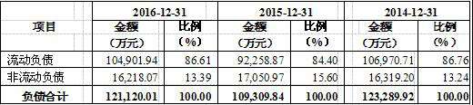 惠达卫浴流动负债(2017版本招股书)\u00A0