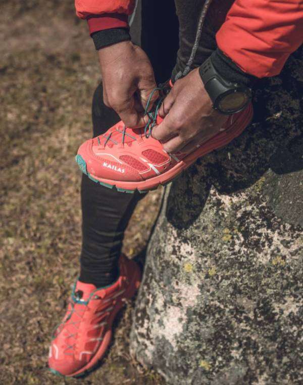 KAILAS FUGA Ⅱ越野跑鞋鞋带系统精心设计。鞋带采用快速穿脱系统。单手操作使得鞋带快速穿脱,可以保障运动中避免鞋带松动,减少枝叶的勾滑,避免在整场比赛中发生鞋带松开等问题。