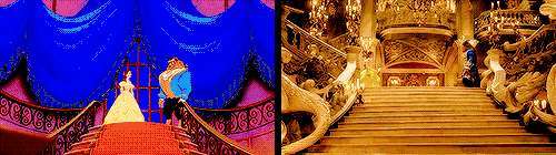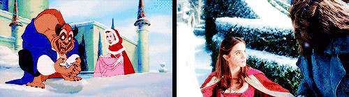 真人版的《美女与野兽》不但高度还原动画情节,就连服装、道具、场景也都极为相似