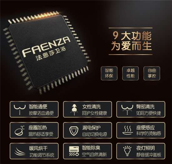 法恩莎卫浴坐立通集合臀洗、妇洗、除臭、暖风烘干、智能节电等众多功能于一体,完美打造智能、舒适、简单的卫浴生活,让你的每一天都畅快自如。