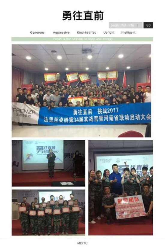 法恩莎瓷砖第三十四届终端销售实战营——河南战区开营啦!来自于河南各地的五十余名法恩莎瓷砖终端销售精英相聚在美丽的郑州樱桃园拓展基地,大家斗志昂扬,齐心协力,开展为期三天三夜的实战训练!