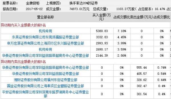 股票1:金牌橱柜(开板次新股,东川路+荣超+两机构马甲大买,有可能高开爆板!)