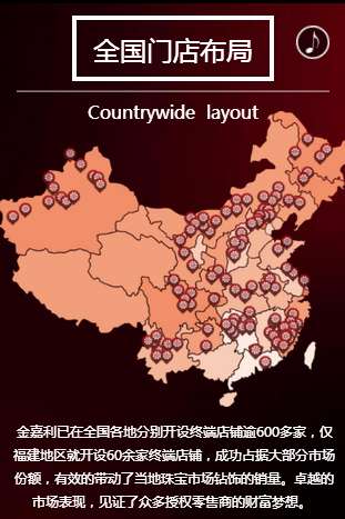 金嘉利已在全国各地分别开设终端店铺达600多家,仅福建地区就开设60余家终端店铺,成功占据大部分市场份额,有效的带动了当地珠宝市场钻饰的销量。卓越的市场表现,见证了众多授权零售商的财富梦想。
