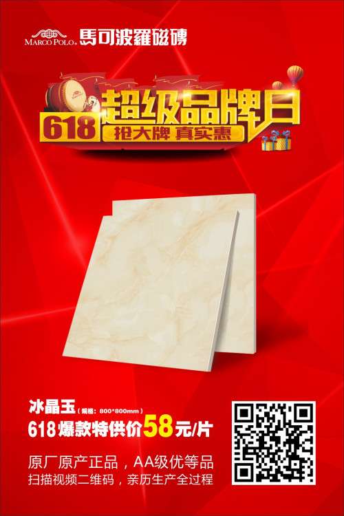 ??据马可波罗瓷砖相关负责人透露,在品牌建设大业全面铺开的今天,马可波罗将顺势而为,全面启动“618超级品牌日”。据了解,618超级品牌日是由马可波罗瓷砖总部统一操盘的全国性联动大型活动,旨在以“6.18”这一品牌日为契机,通过事件营销及促销活动,提高品牌活动的知名度,实现品牌和销量双赢。