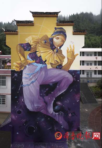 2016立邦「为爱上色」艺术+邀请智利艺术家INTI为湖南吉首太平希望小学创作的墙绘