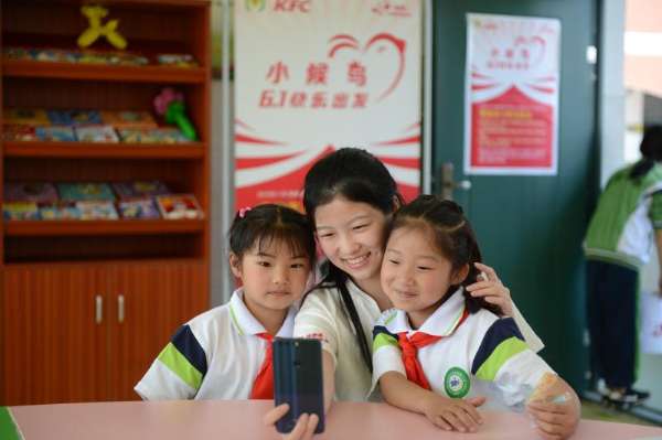 (肯德基与大学生志愿者们一同走进校园为小候鸟送去快乐和陪伴)