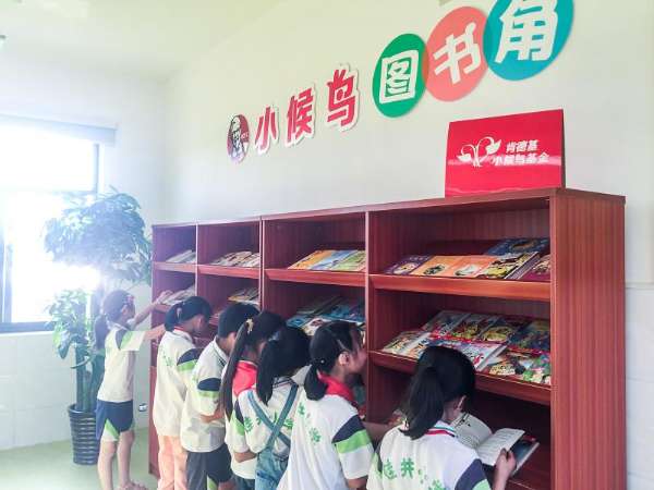 阅读启童智,书香立少年。阅读是帮助儿童扩展经验,认识世界的重要手段。“肯德基小候鸟图书角的设立丰富了留守儿童的校园文化生活,通过阅读将快乐延伸到孩子们的精神世界,帮助更多小候鸟在阅读中收获成长、享受快乐、分享关爱。”桂井小学校长彭玙瑢对此深有感触,为了方便孩子们阅读和学习,学校教学楼二楼也设置了读书长廊。“阅读有助于孩子的心智成长,希望更多的家长能和孩子一起走进阅读的世界,让孩子在亲子阅读中收获知识、亲情和安全感。”桂井小学心理老师赵美姿说。