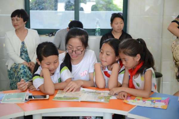 (大学生志愿者们陪伴小候鸟开心阅读)