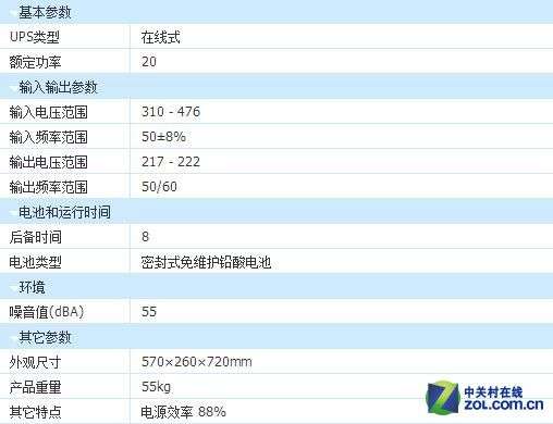 梅兰日兰\u00A0Comet\u00A0DX20K\u00A0三进单出电源采用在线式设计,输出和输入方式采用了宽电压的设计方案,这样可以更好地适应复杂多变的市电环境。这款产品尺寸为570×260×720mm,体积为55KG,占地空间小,为用户节省摆放空间,内部使用密封式免维护铅酸电池,整机的转换效率高达88%,避免浪费资源,同时电力更加的干净安全。