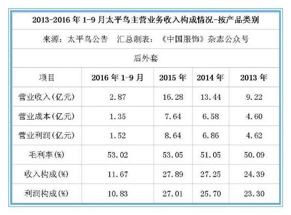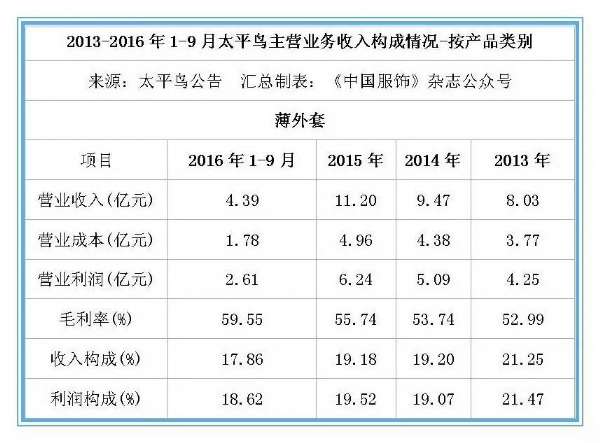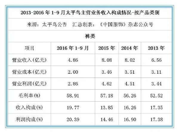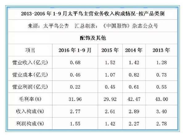 财报显示,2016年1-9月,太平鸟营业收入为39.31亿元,同比增长4.4%;但营业利润为1.76亿元,同比下滑41.56%。归属于发行人股东的扣除非经常性损益后的净利润为1.63亿元,同比下跌21.12%。对于2016年全年的业绩,太平鸟预计扣除非经常性损益后归属于母公司所有者的净利润为3.5亿—3.8亿元,较上年同期下降13.7%—20.5%。