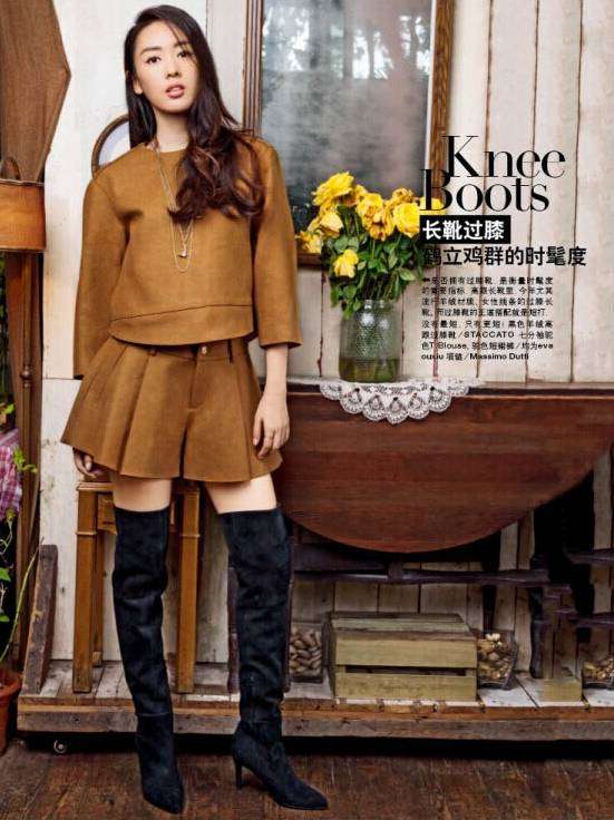 本次大片中,女神童瑶身穿eva ouxiu(伊华欧秀)冬季新款的驼色套装惊艳亮相,略短于普通上衣的七分袖驼色T Blouse 搭配同色短裙裤,与过膝长靴相得益彰,让一向以清纯着称的童瑶瞬间帅气十足,一种鹤立鸡群的时髦感立马展现无疑!