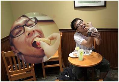 年轻人的专利吃法,颇考验身体的柔韧度和臂力。
