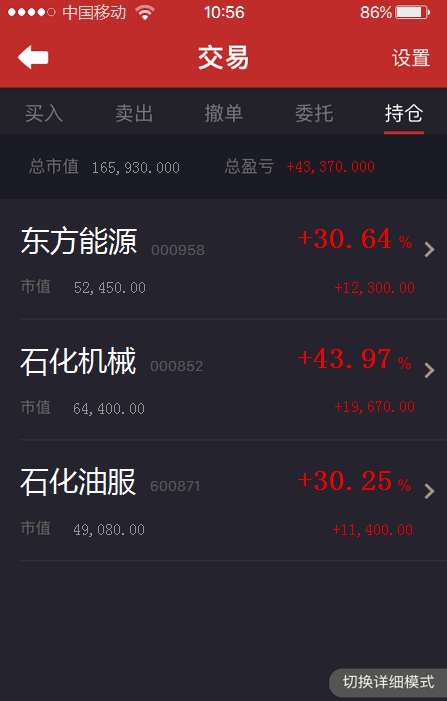 上周另外跟随主力操作得东方能源、石化油服这里不在多说。东方能源已经了结,虽然不是最高但是也有30%得收益到手,石化油服继续拿着,晚间看下银河证券主力得动向再说!炒股最重要的是“知进退”,而“知行合一”最为困难!