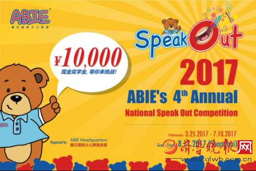 2017年8月11日,爱贝国际少儿英语第四届“Speak Out”全国晋级总决赛学员将在此汇聚,展示风采,挑战未来,赢得世界的掌声!