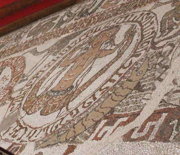 来自《圣经》、《古兰经》、希腊神话和中世纪传奇的故事与图像使得这幅马赛克画成为了中世纪南部意大利多元文化的绝佳证明。
