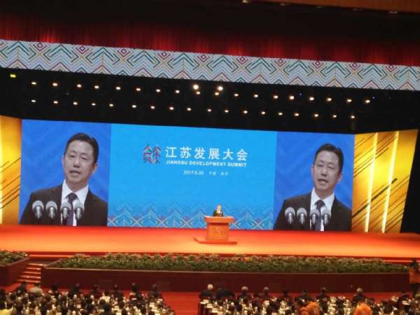 2017年5月20日,备受瞩目的首届江苏发展大会在南京举行,主题是“约在江苏,共筑梦想”。海内外江苏籍知名人士约1500人出席大会,共同回家感受乡音乡情,增进沟通交流,共谋发展合作。全国工商联副主席、红豆集团董事局主席周海江受邀出席大会,并作为江苏唯一本土企业家代表在大会上作了《扎根江苏 拥抱世界》交流发言,引起了海内外苏商的强烈共鸣。当天下午他还主持了江苏发展大会的两个主论坛之一的扬子江工商峰会。