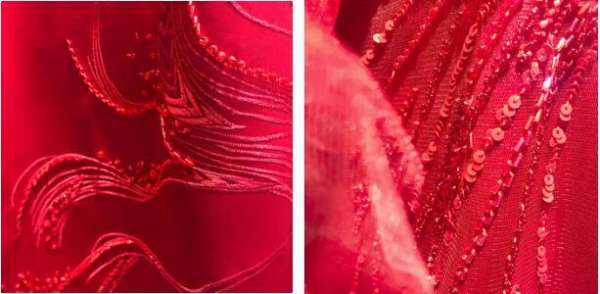 “帝城春欲暮,共道牡丹时”。红色,带着丝滑般顺滑的柔亮,带着你拂去时光的蒙尘,拂拭焦躁的心,如同深邃的目光。传承匠心的匠人们点缀或大或小的珠料,如星星轨迹,沿着希望展开双翼,在这紫禁中宛如惊 红 一瞥。