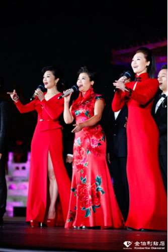 \u00A0\u00A0\u00A0\u00A0我国著名歌唱家吕薇、张也、李丹阳演唱(从左起)\u00A0不仅如此,大秀当晚,金伯利钻石高调发布的主题歌曲《金伯利之歌》,以朴实的语言和动人的旋律,首唱就收获现场嘉宾和媒体的高度关注。