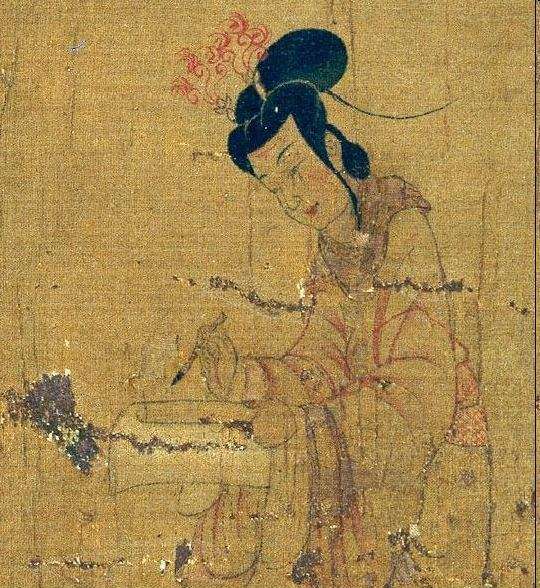 但是小懂发现,《凤求凰》故事发展的事件,应该是公元646年,也就是南朝。而在南朝,由于受佛教影响,妇女喜欢梳一种“飞天髻”的造型。根据顾恺之的《女史箴图》,南北朝时期的妇女发式确实流行将发髻挽成单环或双环,高耸发顶。
