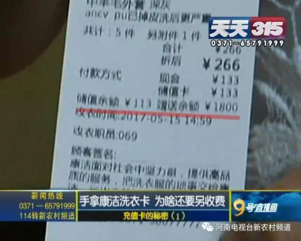 王女士:我找了几家店,昆仑路和淮河路,这些店刚开始说不收,后来说你在我这洗,得给我们拿一半的钱,我说为啥给你拿一半的钱,他说你办卡不是在俺们这办的,俺给你洗负责了,洗多少钱,你得掏一半的现金。266块钱,他给让我交133的现金,不然不洗,我觉得不合理,当初办的时候说洗衣服可以直接刷卡。