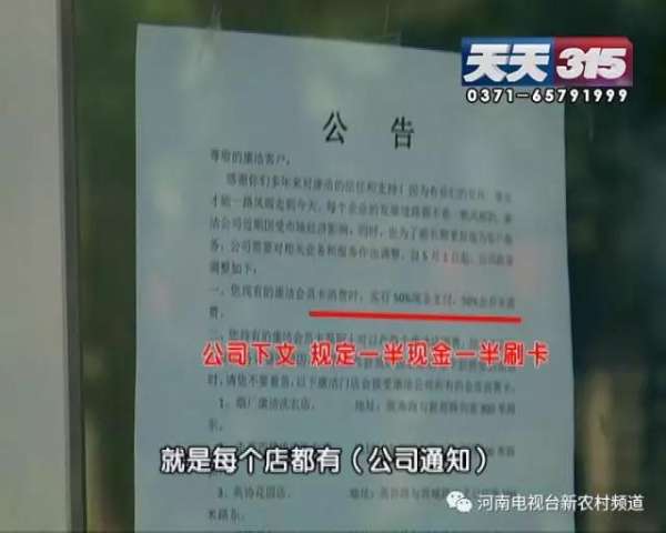 张强:很多投诉都要求退卡,退卡他(康洁公司)又无法解决,然后问他为什么洗衣店要加收一半费用,(康洁公司)说现在流动资金困难,工人都发不下来工资,企业要存货的话只能先这样。