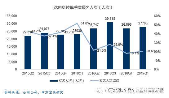 达内科技(Nasdaq: TEDU)2017Q1营收3.33亿元人民币,同比增速23.5%,超出公司先前3.295亿元的收入预告上线。根据公告,2017Q1总营收3.33亿元,同比增长23.5%;营业成本1.28亿元,同比增长33.2%;受季节性波动与新校区、新业务扩张影响,2017Q1净亏损为2463万元,较去年同期2450万净亏损增加0.5%。Non-GAAP营运亏损为负2300万,较去年同期389万亏损有所增加。