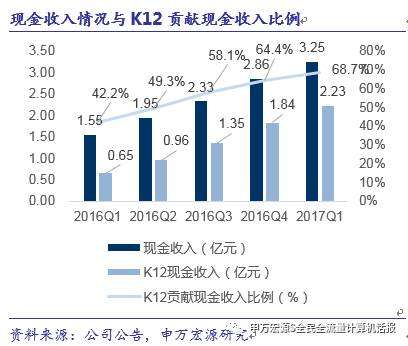 加快二三线城市扩张速度,毛利率、座位利用率略下降,预计Q2-Q3毛利率持续提升。一季度新开18家学习中心,关闭3家学习中心,学习中心数增加15个至160个,进入晋中、济宁、徐州、芜湖、佛山等5个新城市,可容纳学生人数增长20.0%至52882。受新校区扩张与K12新业务毛利率较低影响,2017Q1毛利率同比下降2.8%至61.6%,座位利用率同比下降2%至69%。通常Q3为盈利高峰期,新中心在三至六个月实现盈利,公司预计在第三季度前实现新设中心的正常运转,以期盈利高峰期实现更高营收。预期随着校区推广成熟与新业务营销费用占比下降,毛利率在二、三季度持续提升。